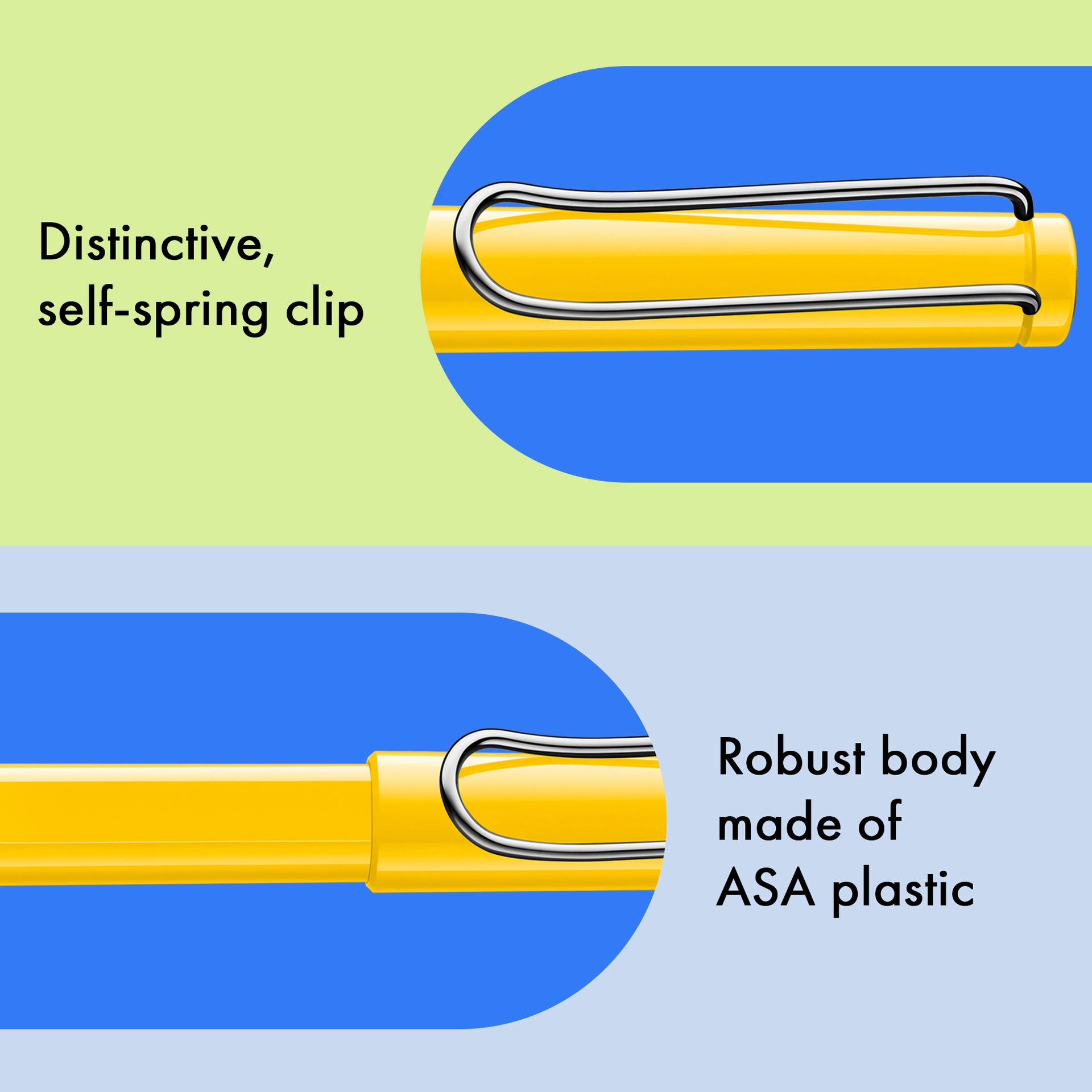 Der LAMY safari Füllhalter ist seit seiner Einführung in den 1980er Jahren ein geliebter Bestseller mit Kultstatus. Der LAMY safari roll-ink ergänzt die Reihe um einen innovativen Tintenpatronenroller, der mit Füllhaltertinte schreibt: Anstelle einer Tintenrollermine nutzt er die bekannte LAMY T 10 Tintenpatrone in Blau, wie sie auch im Füllhalter zum Einsatz kommt.