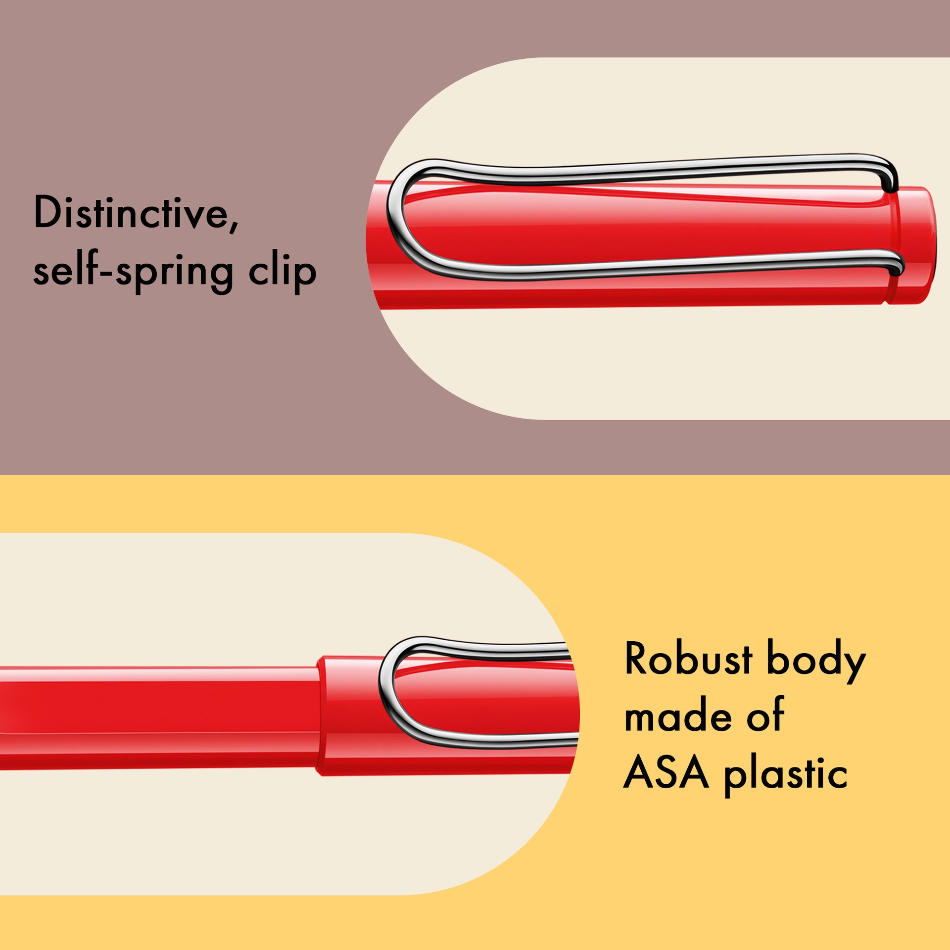 Der LAMY safari Füllhalter ist seit seiner Einführung in den 1980er Jahren ein geliebter Bestseller mit Kultstatus. Der LAMY safari roll-ink ergänzt die Reihe um einen innovativen Tintenpatronenroller, der mit Füllhaltertinte schreibt: Anstelle einer Tintenrollermine nutzt er die bekannte LAMY T 10 Tintenpatrone in Blau, wie sie auch im Füllhalter zum Einsatz kommt.